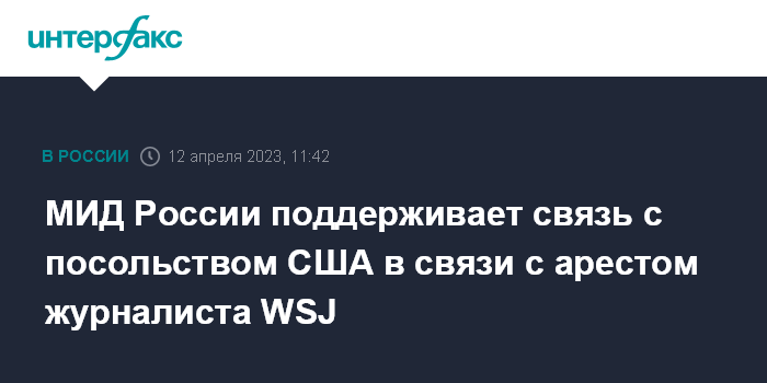 МИД России поддерживает связь с посольством США в связи с арестом журналиста WSJ