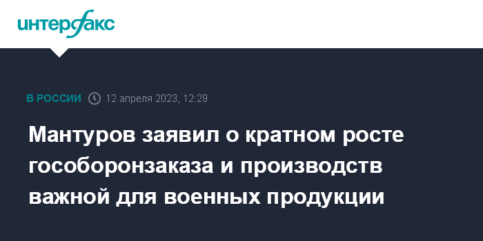 "По понятным причинам не стану приводить цифры, но отмечу, что гособоронзаказ вырос кратно. Чтобы произвести дополнительные объемы вооружений и военной техники предприятия задействовали все возможные ресурсы", - сказал Мантуров.
