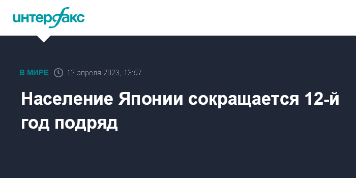 Москва. 12 апреля. INTERFAX.RU - Число граждан Японии продолжает снижаться 12-й год подряд, в 2022 году оно составило 122 млн 31 тыс. человек, сообщает в среду The Japan Times со ссылкой на правительственные данные.