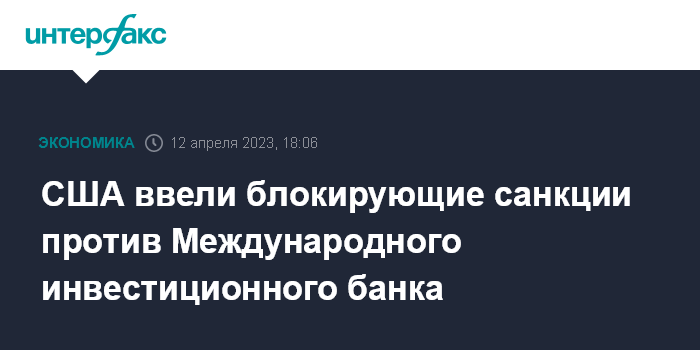 США ввели блокирующие санкции против Международного инвестиционного банка