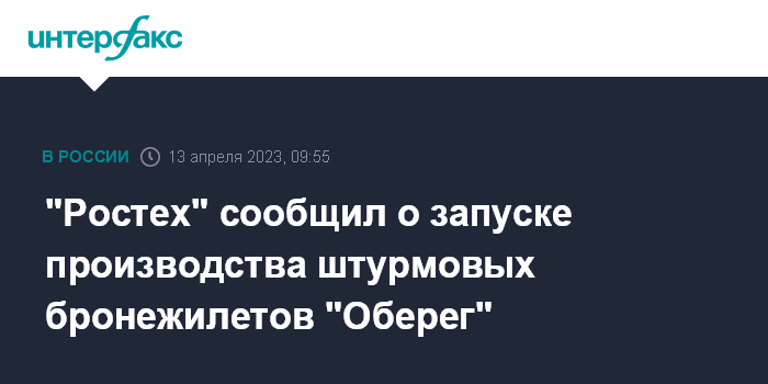 Москва. 13 апреля. INTERFAX.RU - Завод "Октава" ( структура "РТ-Капитала") запустил производство штурмовых бронежилетов "Оберег", обмундирование прошло испытания в зоне специальной военной операции, сообщили в пресс-службе госкорпорации "Ростех".