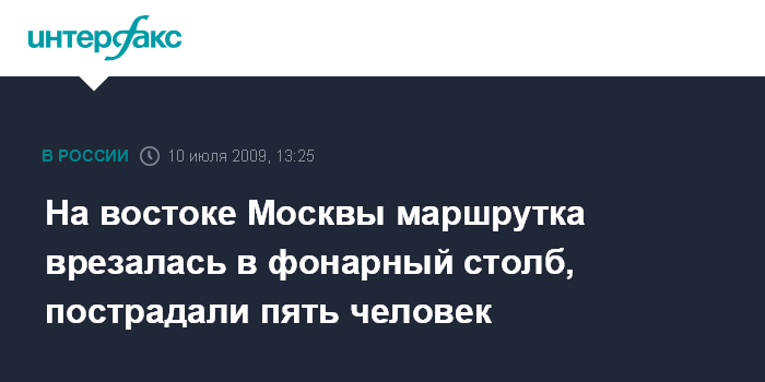На востоке Москвы маршрутка врезалась в фонарный столб, пострадали пять человек