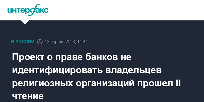 Проект о праве банков не идентифицировать владельцев религиозных организаций прошел II чтение