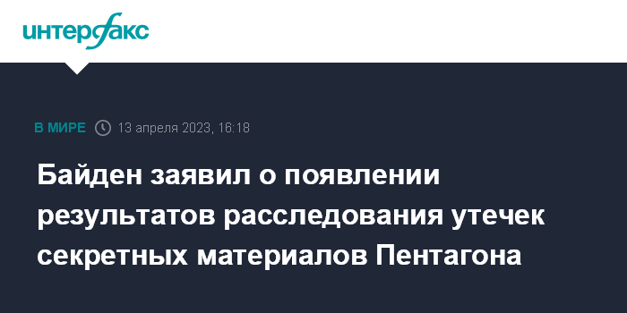 Москва. 13 апреля. INTERFAX.RU - Президент США Джо Байден заявил, что американские спецслужбы и министерство юстиции продолжают работу по определению источника утечек секретных данных Пентагона, и эта работа приносит результаты.