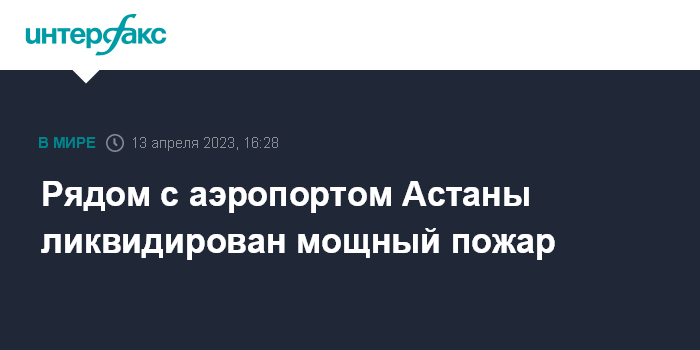 Москва. 13 апреля. INTERFAX.RU - В Казахстане произошел мощный пожар рядом с аэропортом Астаны, там горел сухостой. Пожар тушили шесть часов, следует из заявлений МЧС республики.