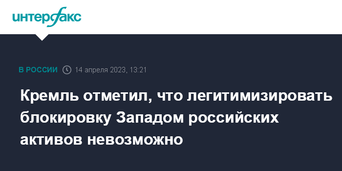 Кремль отметил, что легитимизировать блокировку Западом российских активов невозможно