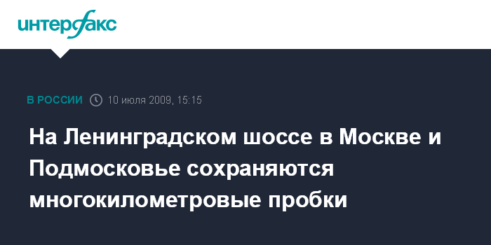 Москва. 10 июля. INTERFAX.RU - Серьезные пробки и заторы отмечаются на Ленинградском шоссе - как на территории Москвы, так и в Московской области в обоих направлениях, передает корреспондент "Интерфакса".