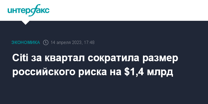 Citi за квартал сократила размер российского риска на $1,4 млрд