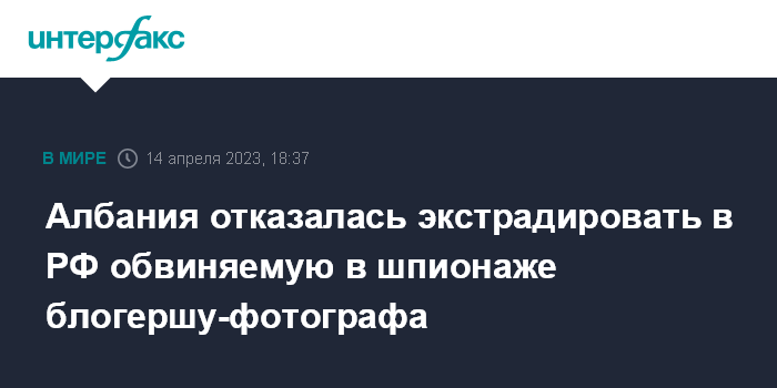 Москва. 14 апреля. INTERFAX.RU - Суд в Албании отказал в экстрадиции на родину российской блогерши Светланы Тимофеевой, которую задержали на заброшенном албанском военном заводе в августе 2022 года и обвинили в шпионаже, передают в пятницу европейские СМИ.