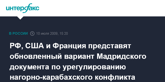 РФ, США и Франция представят обновленный вариант Мадридского документа по урегулированию нагорно-карабахского конфликта