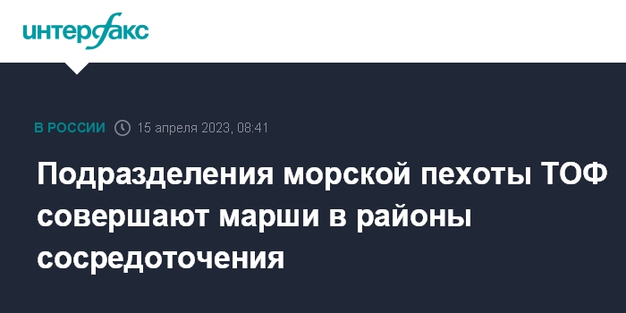 Москва. 15 апреля. INTERFAX.RU - Подразделения береговых войск и морской пехоты Тихоокеанского флота РФ совершают в рамках внезапной проверки боеготовности марши в районы сосредоточения, сообщает российское министерство обороны.