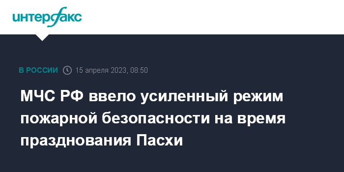 МЧС РФ ввело усиленный режим пожарной безопасности на время празднования Пасхи
