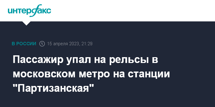 В экстренных службах "Интерфаксу" сообщили, что на станции "Партизанская" под прибывающий поезд упал пассажир.