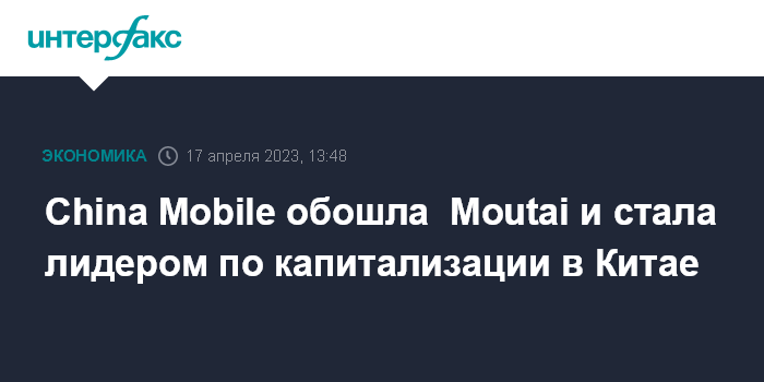 Котировки акций телекоммуникационной компании выросли на 4,6% по итогам торгов 17 апреля на Шанхайской фондовой бирже, в то время как бумаги Moutai подорожали на 2,3%. В результате капитализация China Mobile достигла 2,2 трлн юаней ($319,9 млрд). Это выше рыночной стоимости производителя традиционного китайского алкогольного напитка "Маотай", которая составляет 2,15 трлн юаней.