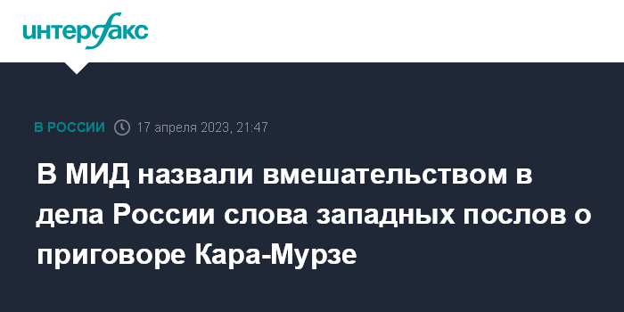 В МИД назвали вмешательством в дела России слова западных послов о приговоре Кара-Мурзе
