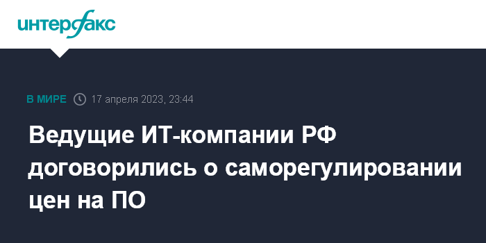 Москва. 17 апреля. INTERFAX.RU - Ведущие российские ИТ-компании планируют ввести механизм саморегулирования цен на программное обеспечение (ПО), говорится в сообщении Минцифры по итогам прошедшей в понедельник встречи участников отрасли.