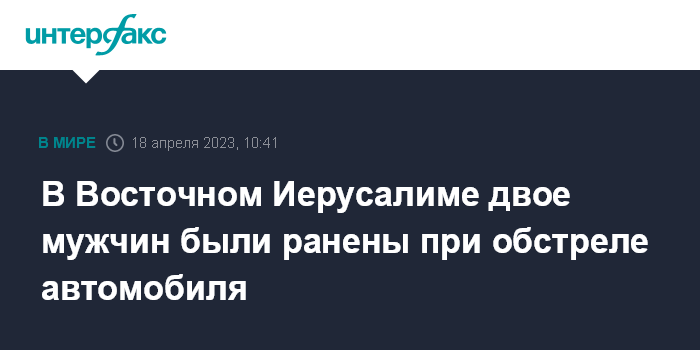 Москва. 18 апреля. INTERFAX.RU - В Восточном Иерусалиме неизвестный обстрелял легковой автомобиль и ранил двух израильтян, они госпитализированы в состоянии средней степени тяжести, пишет The Times of Israel со ссылкой на службу скорой помощи.
