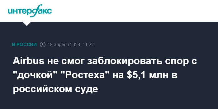 Airbus не смог заблокировать спор с "дочкой" "Ростеха" на $5,1 млн в российском суде