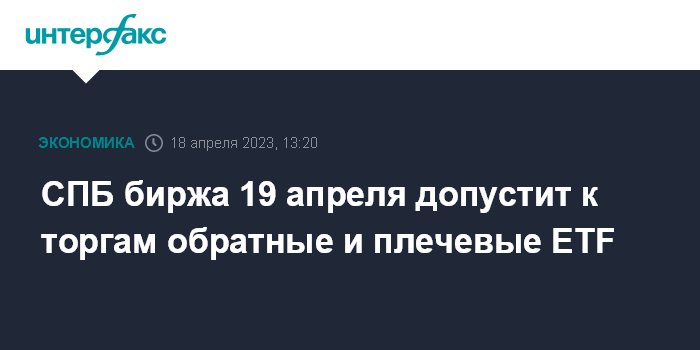 СПБ биржа 19 апреля допустит к торгам обратные и плечевые ETF