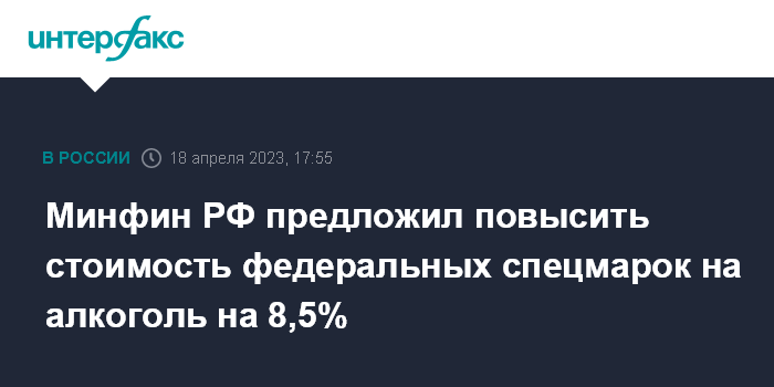 Минфин РФ предложил повысить стоимость федеральных спецмарок на алкоголь на 8,5%