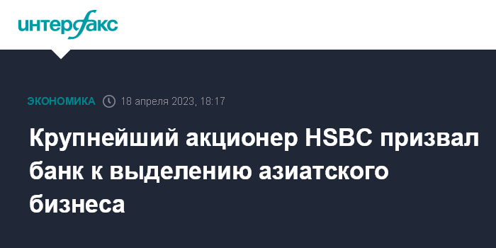 Крупнейший акционер HSBC призвал банк к выделению азиатского бизнеса