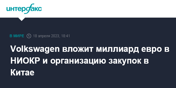 Москва. 18 апреля. INTERFAX.RU - Volkswagen AG инвестирует 1 млрд евро в создание новой компании, которая будет специализироваться на научно-исследовательских и опытно-конструкторских работах (НИОКР) и закупочной деятельности в Китае. Об этом говорится в сообщении германского концерна.