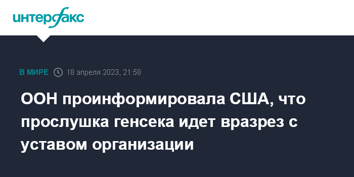 На прошлой неделе "Би-би-си" со ссылкой на попавшие в интернет американские секретные документы сообщила, что Вашингтон мог прослушивать разговоры Гутерриша с его заместителем. В частности, в этих документах отмечается, что генсек ООН в высокой степени учитывал интересы России в рамках "зерновой сделки".