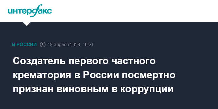 Создатель первого частного крематория в России посмертно признан виновным в коррупции