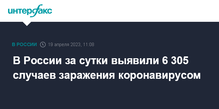 Москва. 19 апреля. INTERFAX.RU - В России за сутки выявили 6 305 новых случаев коронавирусной инфекции, умерли 38 пациентов с COVID-19, следует из данных федерального оперативного штаба по борьбе с пандемией.