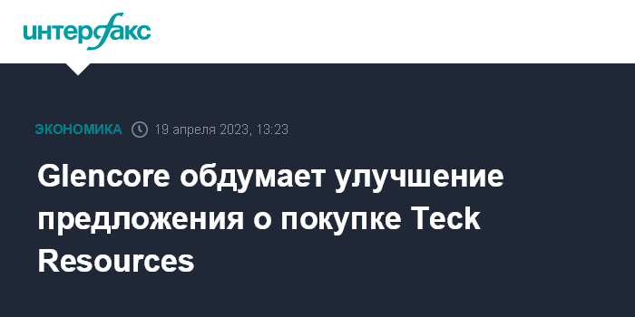 Москва. 19 апреля. INTERFAX.RU - Glencore Plc готова рассмотреть возможность улучшения предложения о покупке Teck Resources Ltd., говорится в ее открытом письме к акционерам канадской компании.