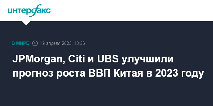 JPMorgan, Citi и UBS улучшили прогноз роста ВВП Китая в 2023 году
