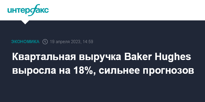 Москва. 19 апреля. INTERFAX.RU - В I квартале 2023 года американская нефтесервисная корпорация Baker Hughes увеличила чистую прибыль и выручку, при этом скорректированная прибыль и выручка оказались лучше прогнозов аналитиков.