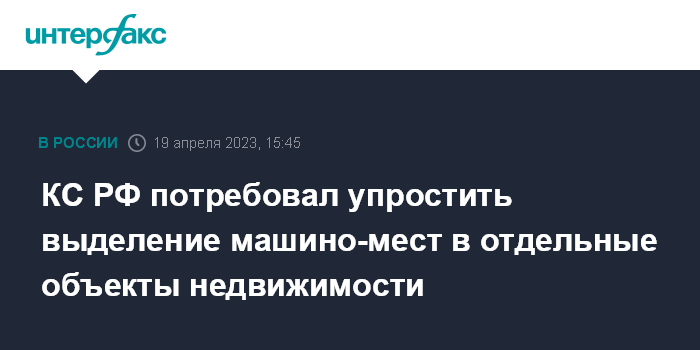 Москва. 19 апреля. INTERFAX.RU - Конституционный суд (КС) РФ признал неконституционными действующие правила перерегистрации машино-мест из долевой собственности в самостоятельные объекты недвижимости. Согласно опубликованному постановлению суда, они должны быть упрощены, а до этого момента хозяева парковок могут выделять их в натуре по суду без согласия совладельцев. Последние также лишаются преимущественного права выкупа машино-мест, являющихся общедомовой собственностью.
