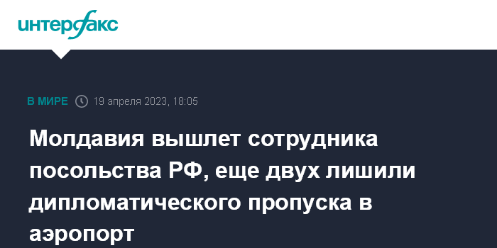 Молдавия вышлет сотрудника посольства РФ, еще двух лишили дипломатического пропуска в аэропорт