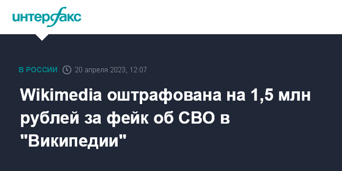 Wikimedia оштрафована на 1,5 млн рублей за фейк об СВО в "Википедии"