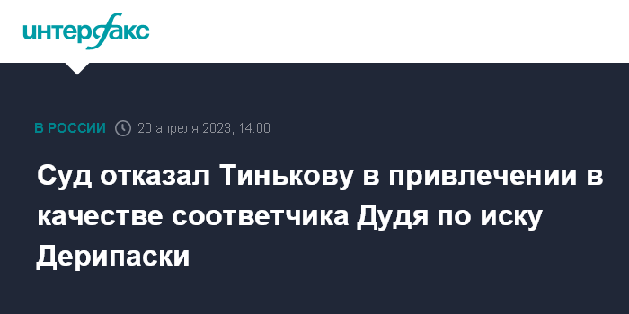 "Сегодня в суде ответчиком был заявлен ряд ходатайств, в том числе, о привлечении в дело Юрия Дудя (признан иноагентом - ИФ). Представители Тинькова мотивировали свое ходатайство тем, что на своем YouTube-канале Дудь опубликовал интервью Тинькова, который повторил оспариваемую нами информацию, которую ранее он распространил у себя в Instagram (информационный ресурс запрещенной в РФ организации - ИФ). Суд, выслушав доводы сторон, не нашел оснований для удовлетворения требований ответчика", - сказал Мельников.