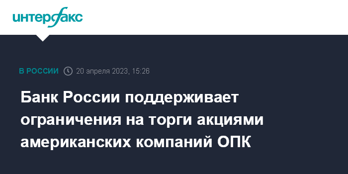 Банк России поддерживает ограничения на торги акциями американских компаний ОПК