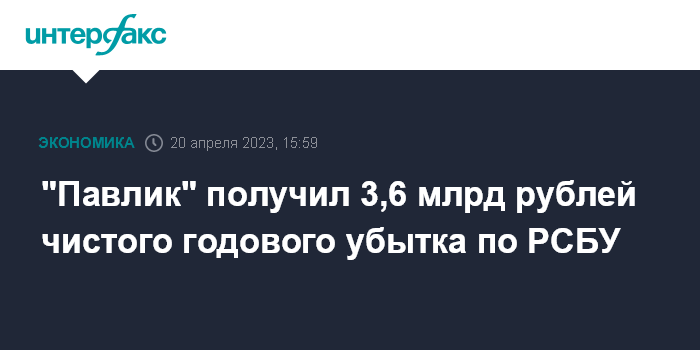 "Павлик" получил 3,6 млрд рублей чистого годового убытка по РСБУ