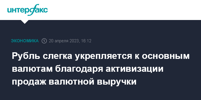 По мнению экспертов "Интерфакс-ЦЭА", рубль немного укрепляется к основным мировым валютам в ходе дневных торгов 19 апреля благодаря росту предложения иностранной валюты со стороны экспортеров в условиях приближающегося налогового периода апреля. Вместе с тем более заметному укреплению нацвалюты мешают активно падающие второй день подряд мировые цены на нефть.