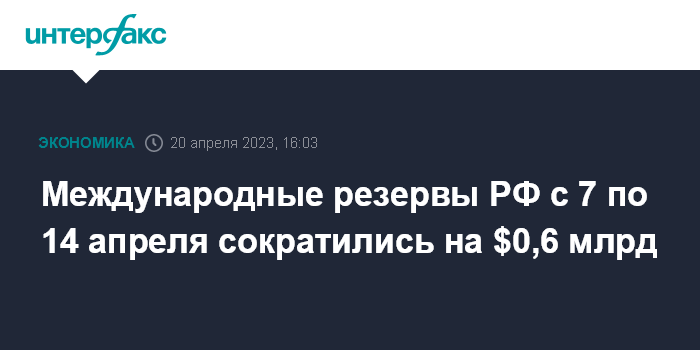 Международные резервы РФ с 7 по 14 апреля сократились на $0,6 млрд