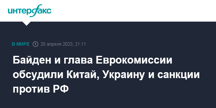 Байден и глава Еврокомиссии обсудили Китай, Украину и санкции против РФ