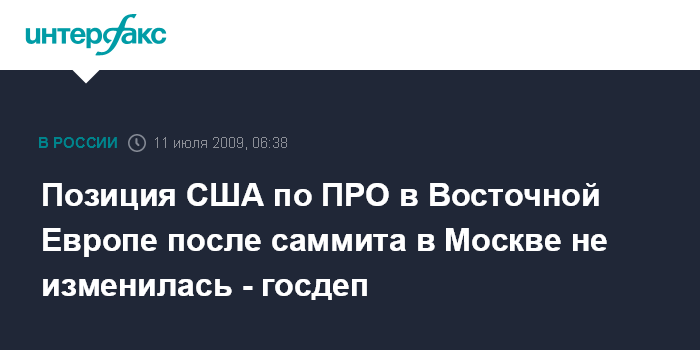 Позиция США по ПРО в Восточной Европе после саммита в Москве не изменилась - госдеп