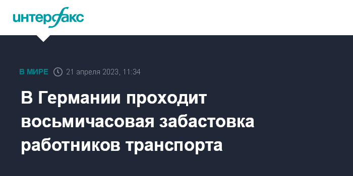 Москва. 21 апреля. INTERFAX.RU - В Германии в пятницу проходит восьмичасовая забастовка работников транспорта, которые требуют повышения зарплат, сообщает АР. Бастуют железнодорожники и четыре крупнейших аэропорта страны.