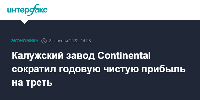 Калужский завод Continental сократил годовую чистую прибыль на треть
