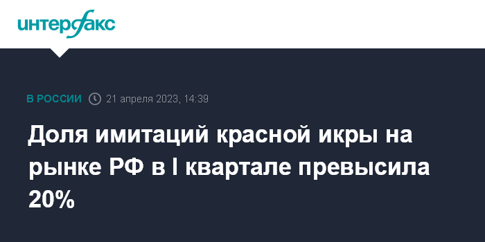 Москва. 21 апреля. INTERFAX.RU - Доля имитационных аналогов натуральной икры лососевых видов рыбы на рынке РФ в первом квартале превысила 20% и имеет тенденцию к увеличению. Россельхознадзор начал разработку методики, которая поможет различать эту продукцию.