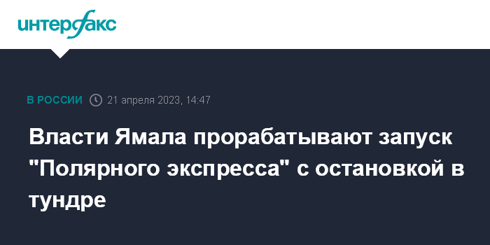 Москва. 21 апреля. INTERFAX.RU - В администрации Ямало-Ненецкого автономного округа обсуждают запуск путешествия по железной дороге из Москвы на Ямал с возможностью остановки в тундре и выходом в стойбище к коренным жителям, сообщил в Telegram директор департамента молодежной политики округа Наиль Хайруллин.