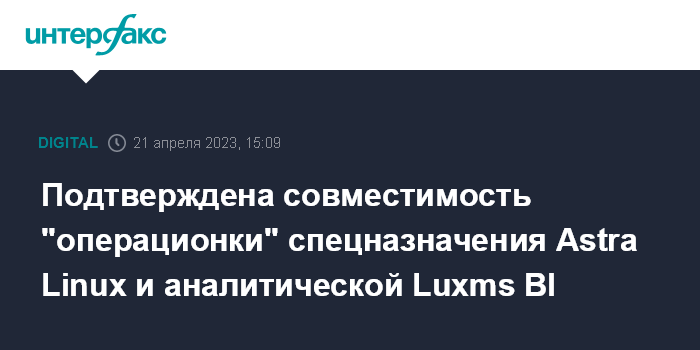 Подтверждена совместимость "операционки" спецназначения Astra Linux и аналитической Luxms BI