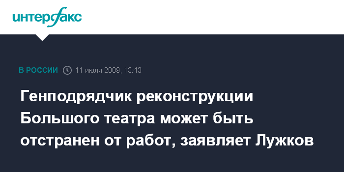 Генподрядчик реконструкции Большого театра может быть отстранен от работ, заявляет Лужков