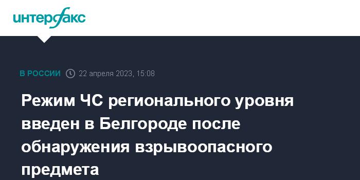 Режим ЧС регионального уровня введен в Белгороде после обнаружения взрывоопасного предмета