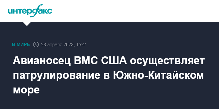 Москва. 23 апреля. INTERFAX.RU - Палубная авиация американского атомного авианосца USS Nimitz выполняет патрульные полеты в районе Южно-Китайского моря, следует из данных 7-го оперативного флота США.